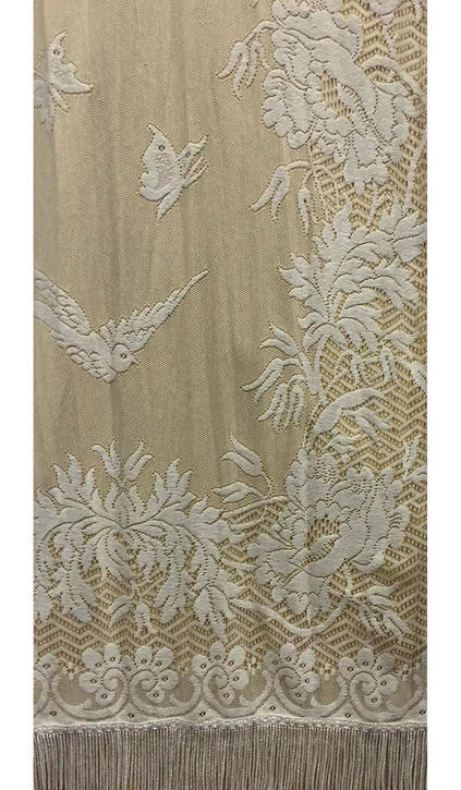 Pair Drapes 11'9" x 4' Cotton / Lace Overlay / Fringe