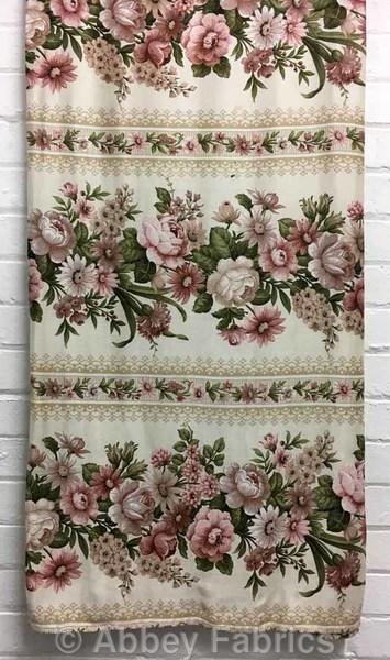 Pair Drapes 6'6" x 4' Floral Garland Stripe Sateen