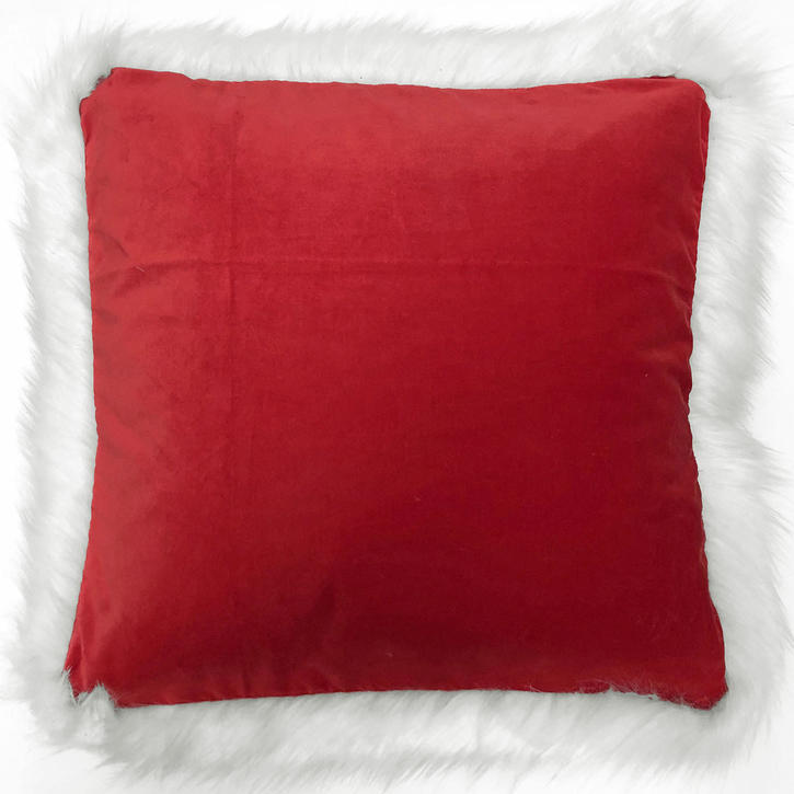 Cushion 20" x 20" Red Velvet / Fur Trim