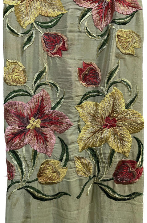 Shawl Large Flowers Silk Floss Embroidered / Fringed